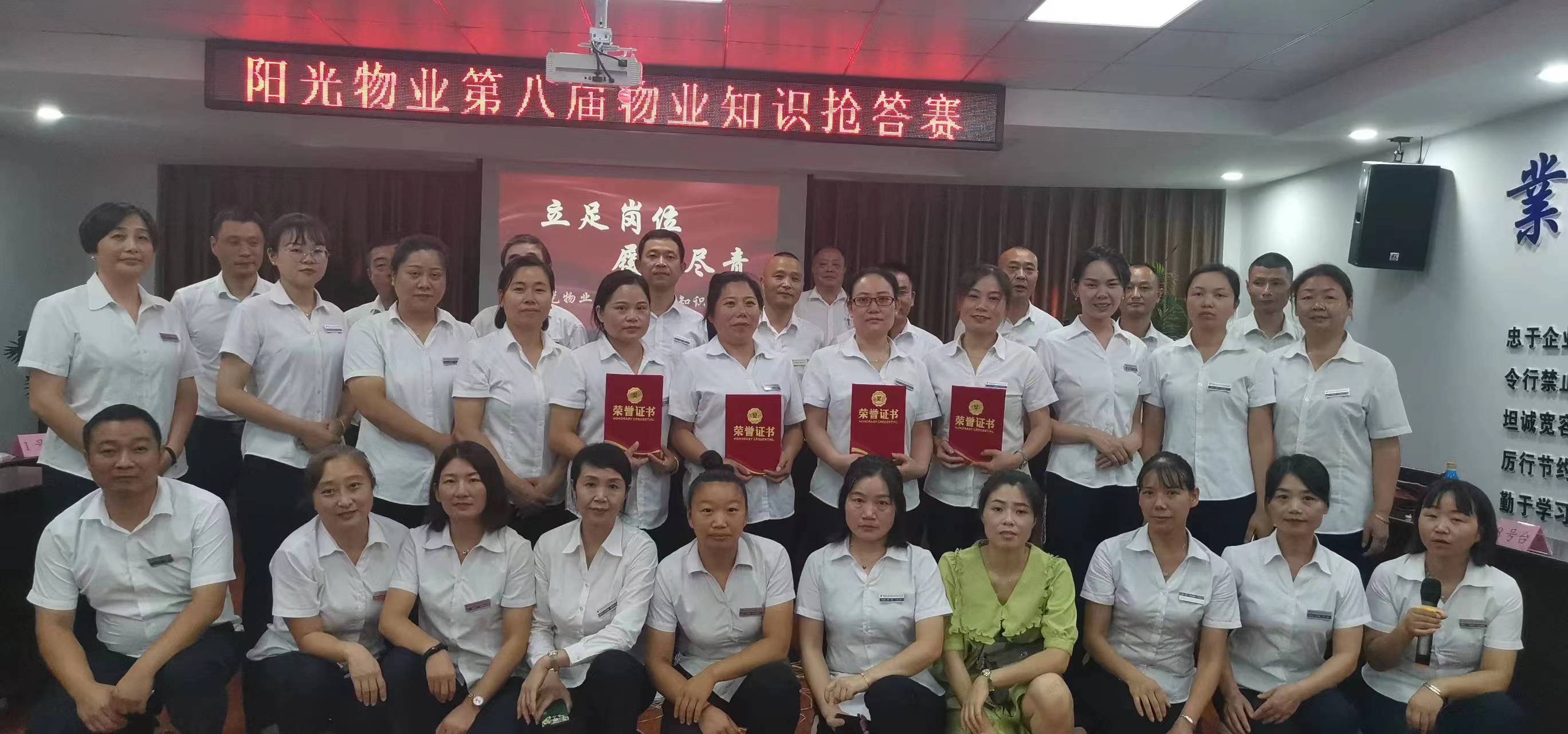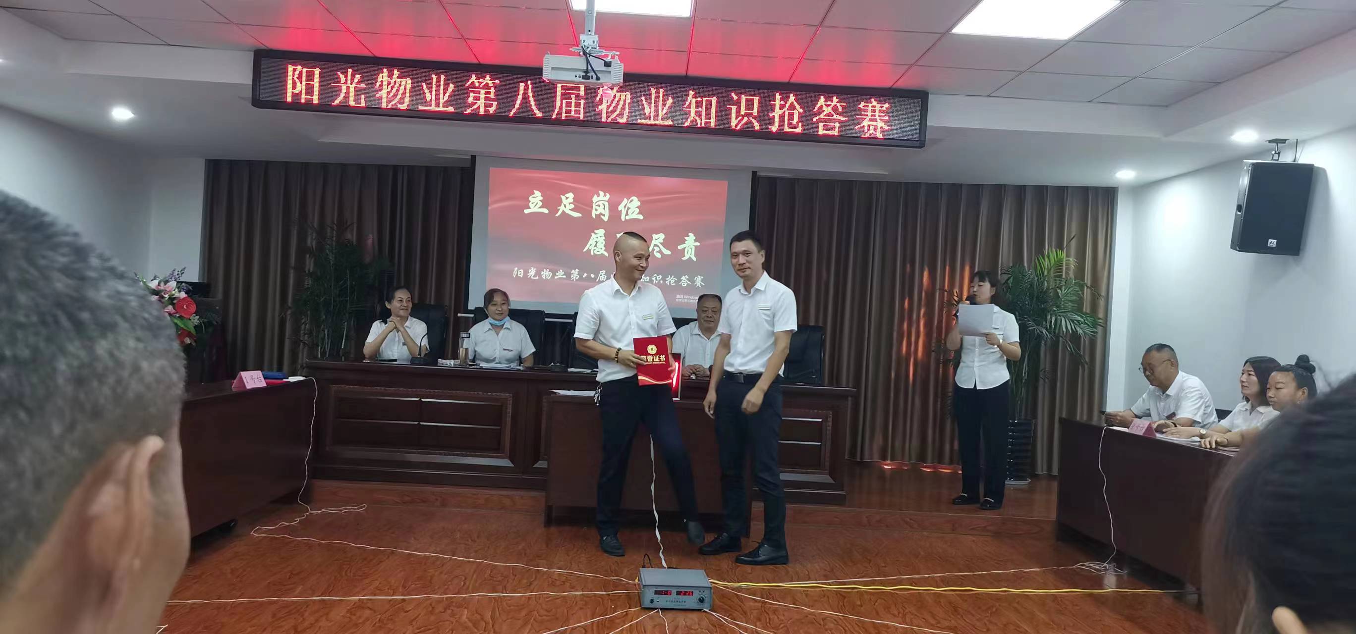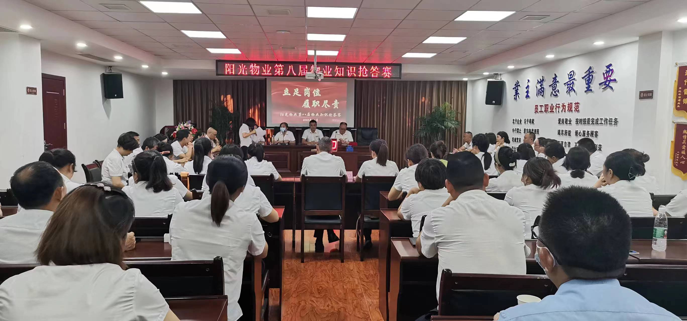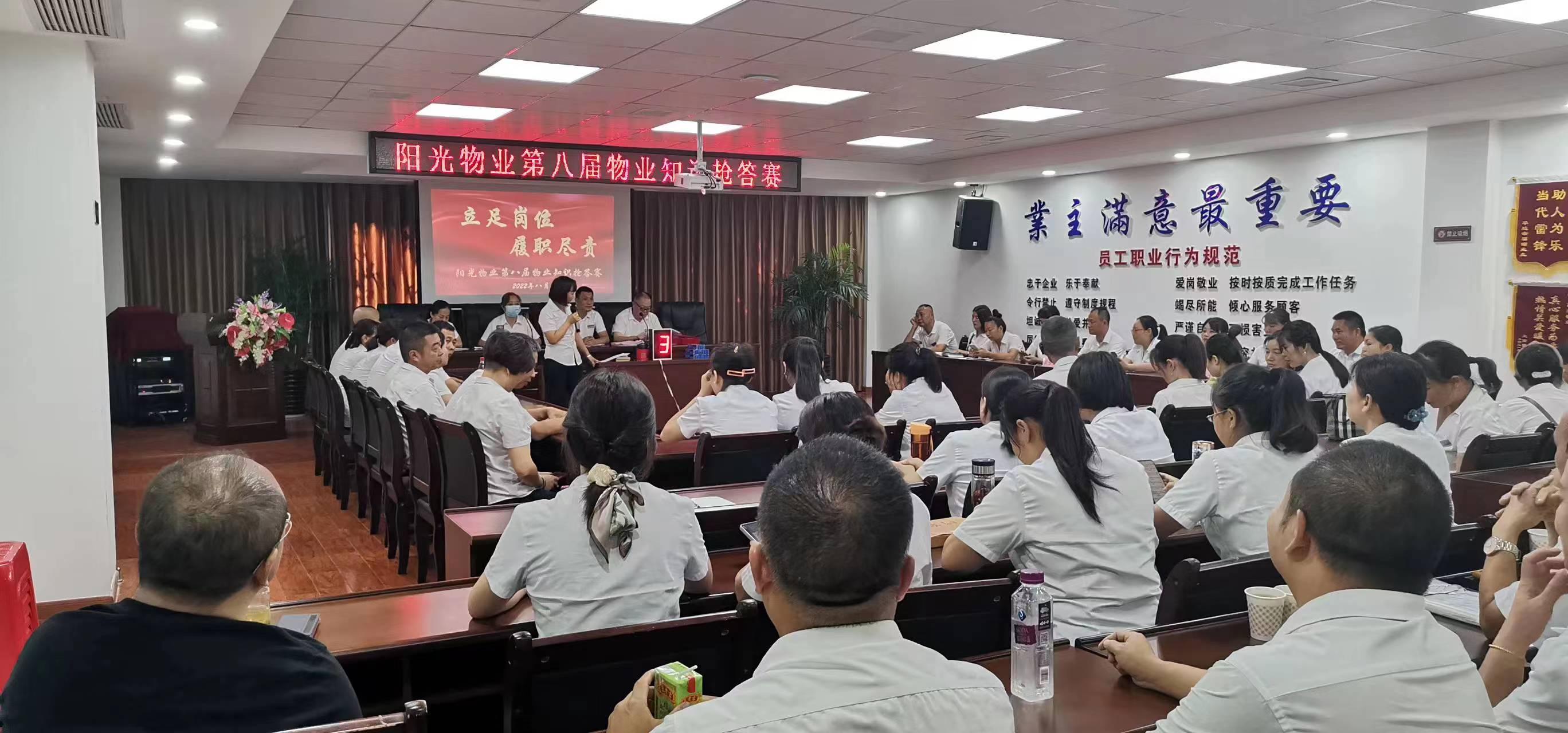 8月13日上午,陽光物業(yè)公司總部會議室傳來一陣陣熱烈的掌聲,“閉路監(jiān)控鏡頭應(yīng)根據(jù)哪些部位進行區(qū)分?設(shè)備房每平方米需要多大的亮度?房屋的建筑主體具體包括哪些部位?”這是陽光物業(yè)、沁園春物業(yè)的全體管理人員在開展“立足崗位、履職盡責”物業(yè)管理知識搶答賽活動。